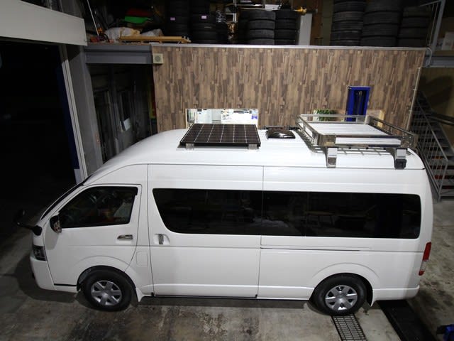 ソーラーパネル ルーフベンチレーター ルーフキャリアの3点をハイエースのルーフに・・・
