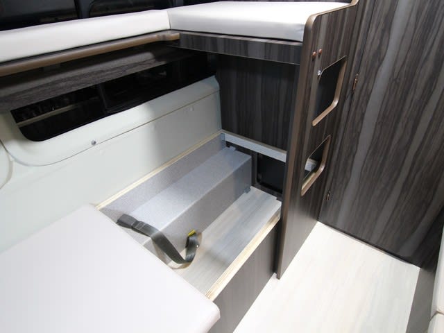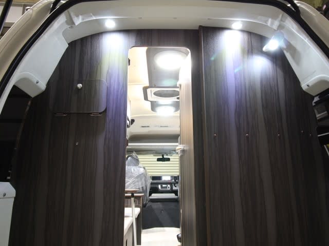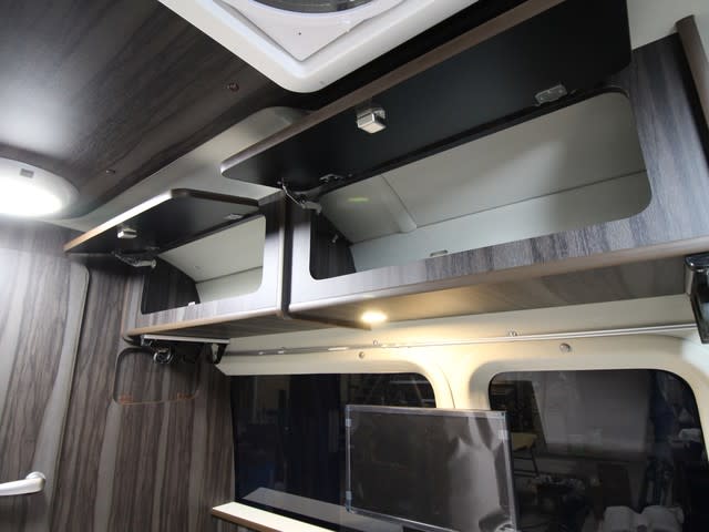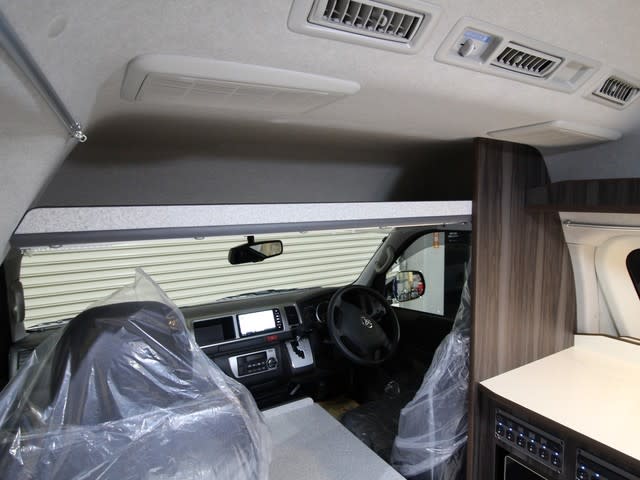 運転席上部は収納 寝具や着替えなど収納大です。