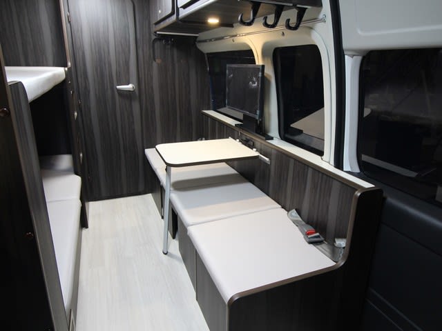 7名乗車 3名就寝 釣り仕様 シンク寸法、ベッド寸法、収納の寸法、家具と内装の色はお客様のオーダーです。