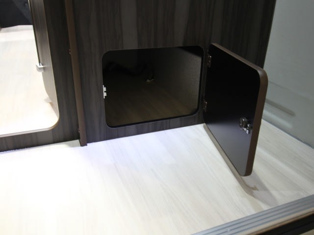 右下の扉はシート下(後側)の収納につながっているので中に入りシートを持ち上げて物を出し入れする必要がありません。