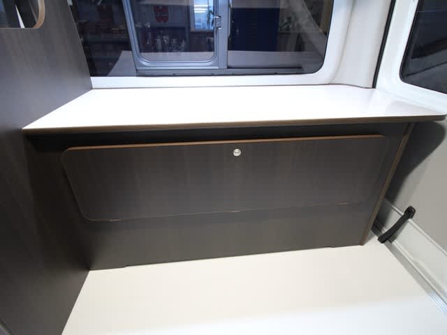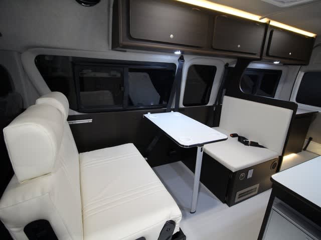 走行時はセカンドシートを前向きにして、テーブルも移動することができます