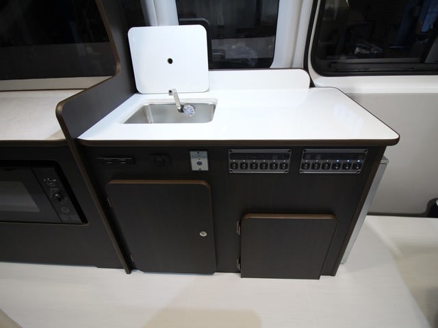 水回りも完備!シンク下には給・排水タンク各12Lが収納されています